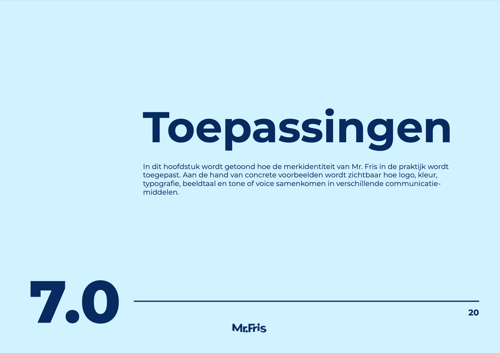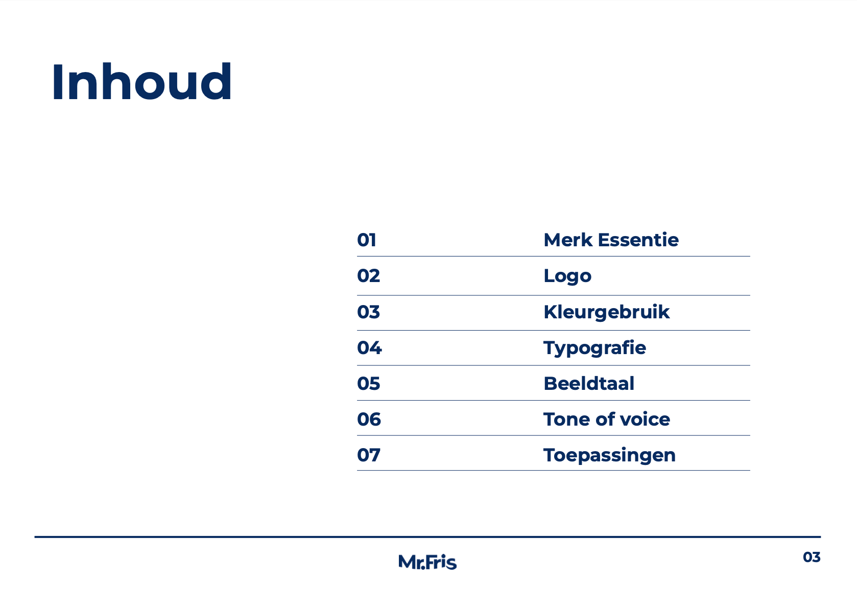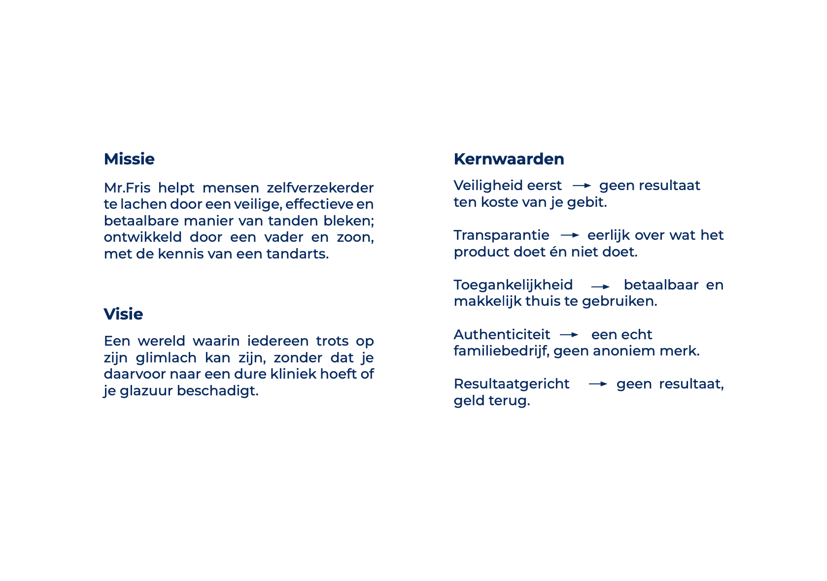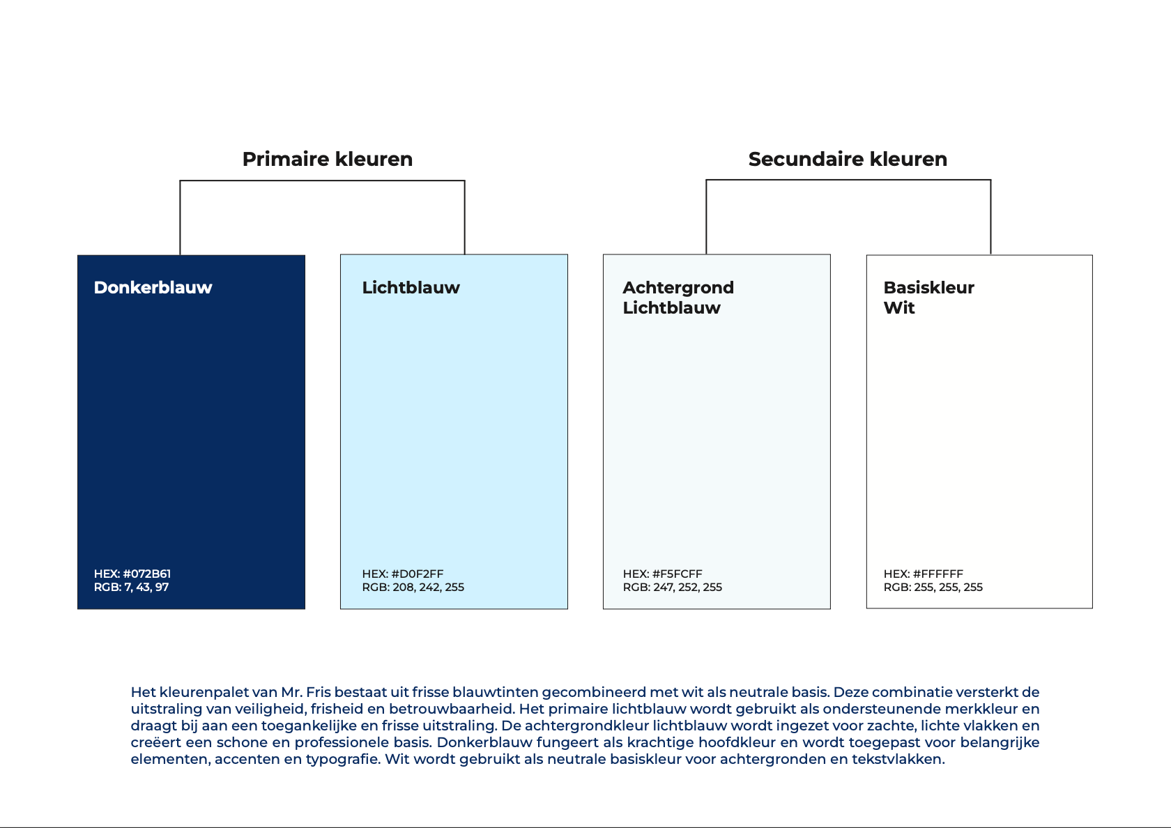 This project presents the brand guidelines for Mr. Fris, a teeth whitening brand developed by a father and son with the knowledge of a dentist. The goal of the project was to translate the brand’s core values; safety, transparency, accessibility, and authentic family-driven entrepreneurship, into a clear and consistent visual and verbal identity.