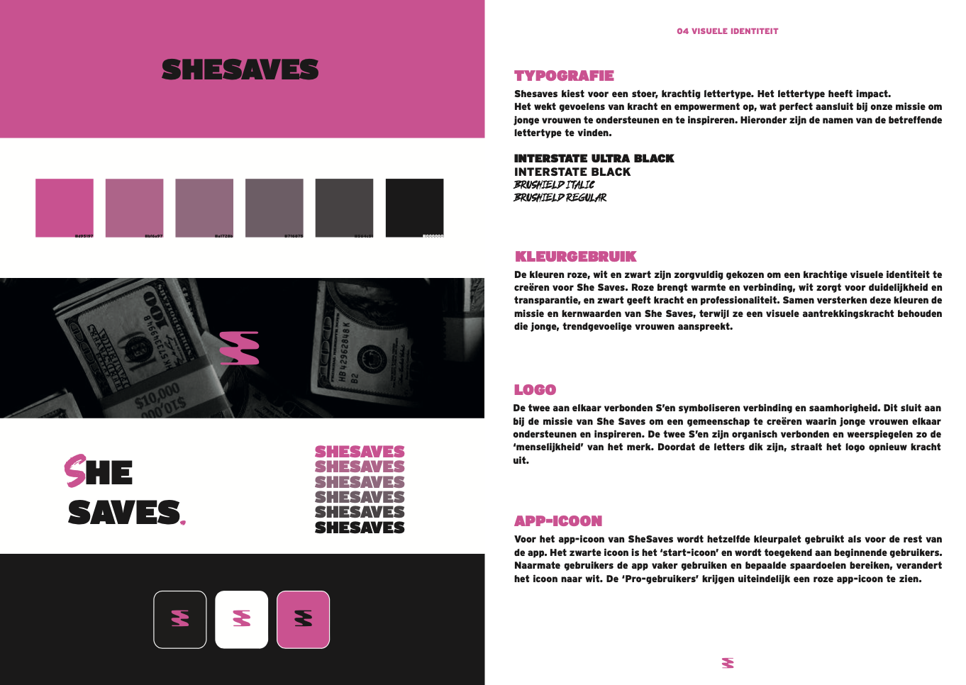 She Saves is a fictional lifestyle brand that addresses financial struggles among young women. In a world shaped by capitalist pressures, the platform encourages responsibility, self-reflection, and awareness around money and consumption. Rooted in values of connection, growth, and conscious living, She Saves empowers young women to make informed financial choices and build resilience. This project shows how branding can create meaningful impact by fostering a supportive space for personal development and social change.